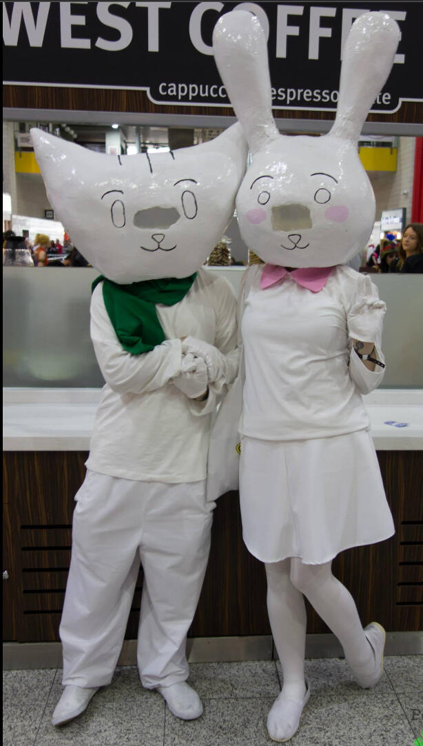 Doki and Nabi from There She Is!!! One of our oldest cosplays, and the one that he proposed to me while wearing.